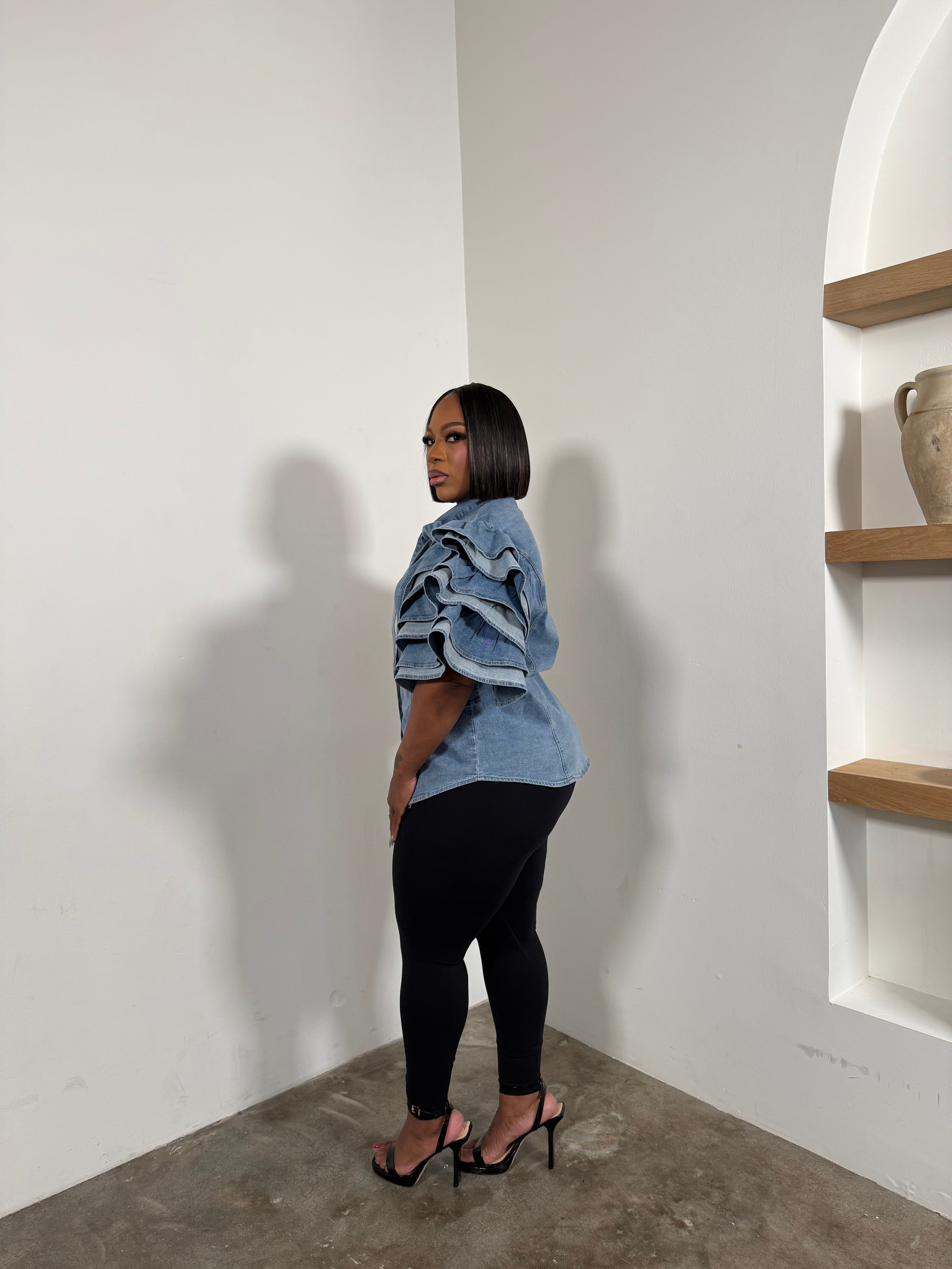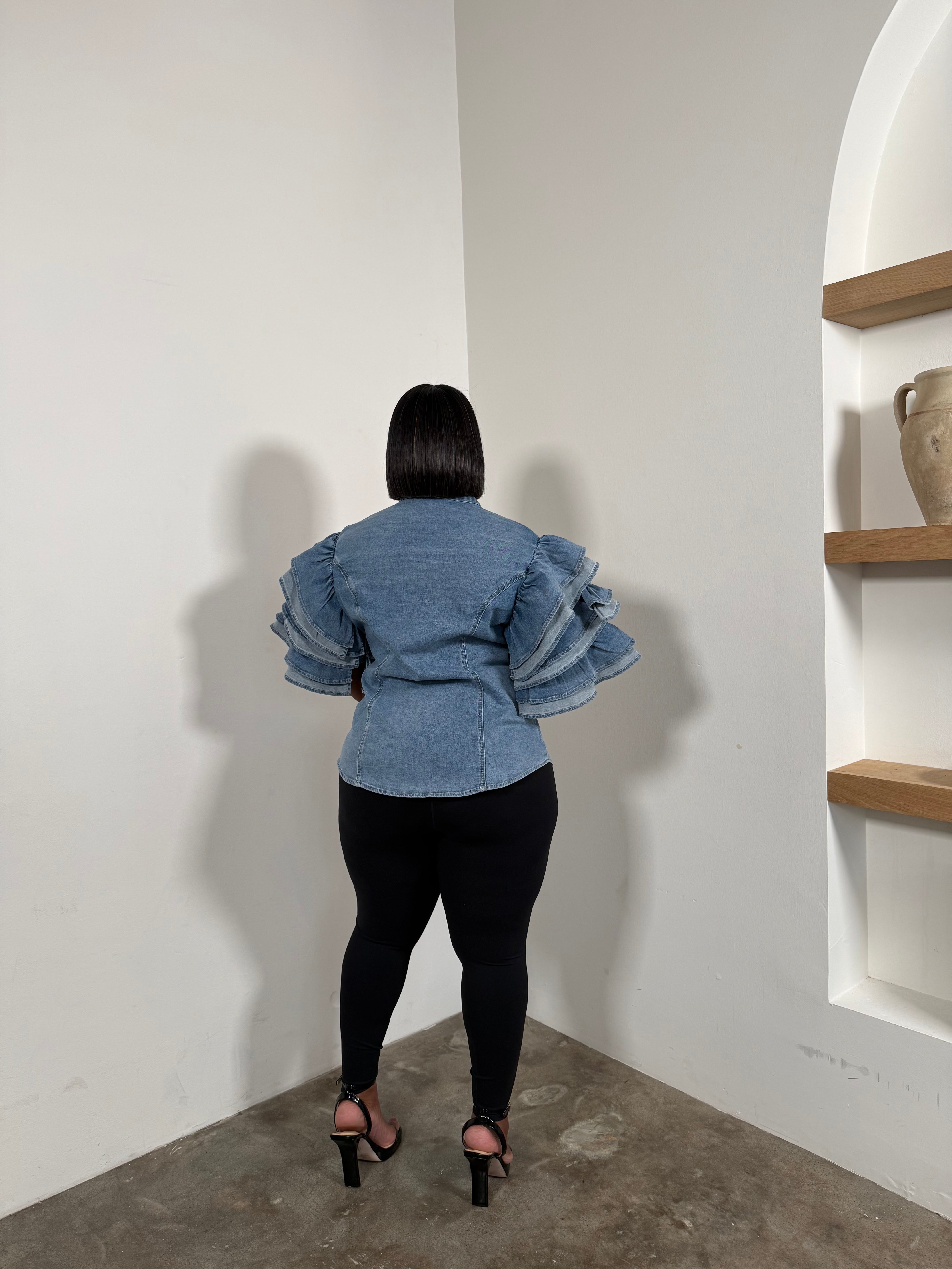 The Ruffle Sleeve Denim Top