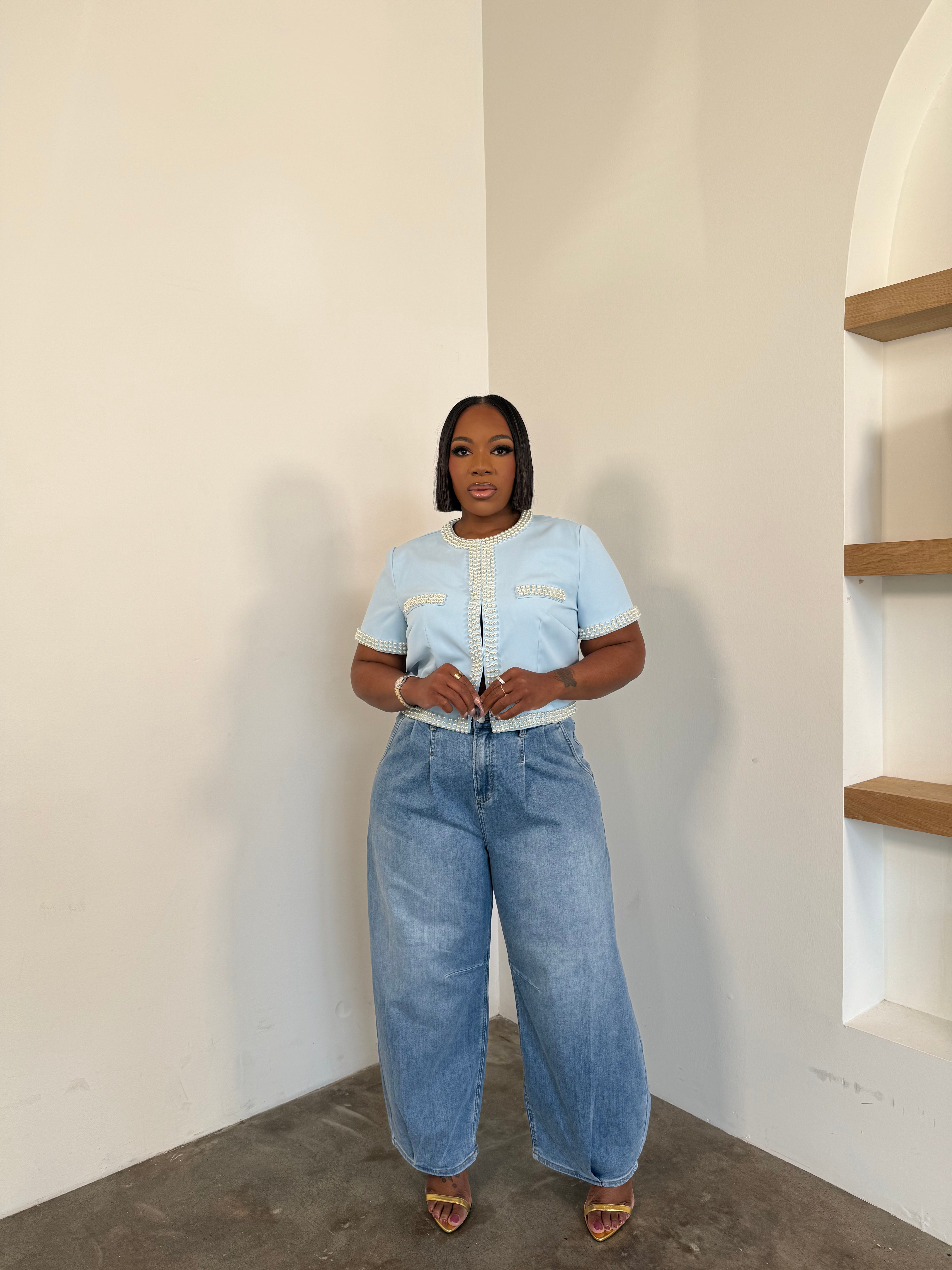 The Boss Moves Denim Pants Set (I'MarE Exclusive) (Light Blue)