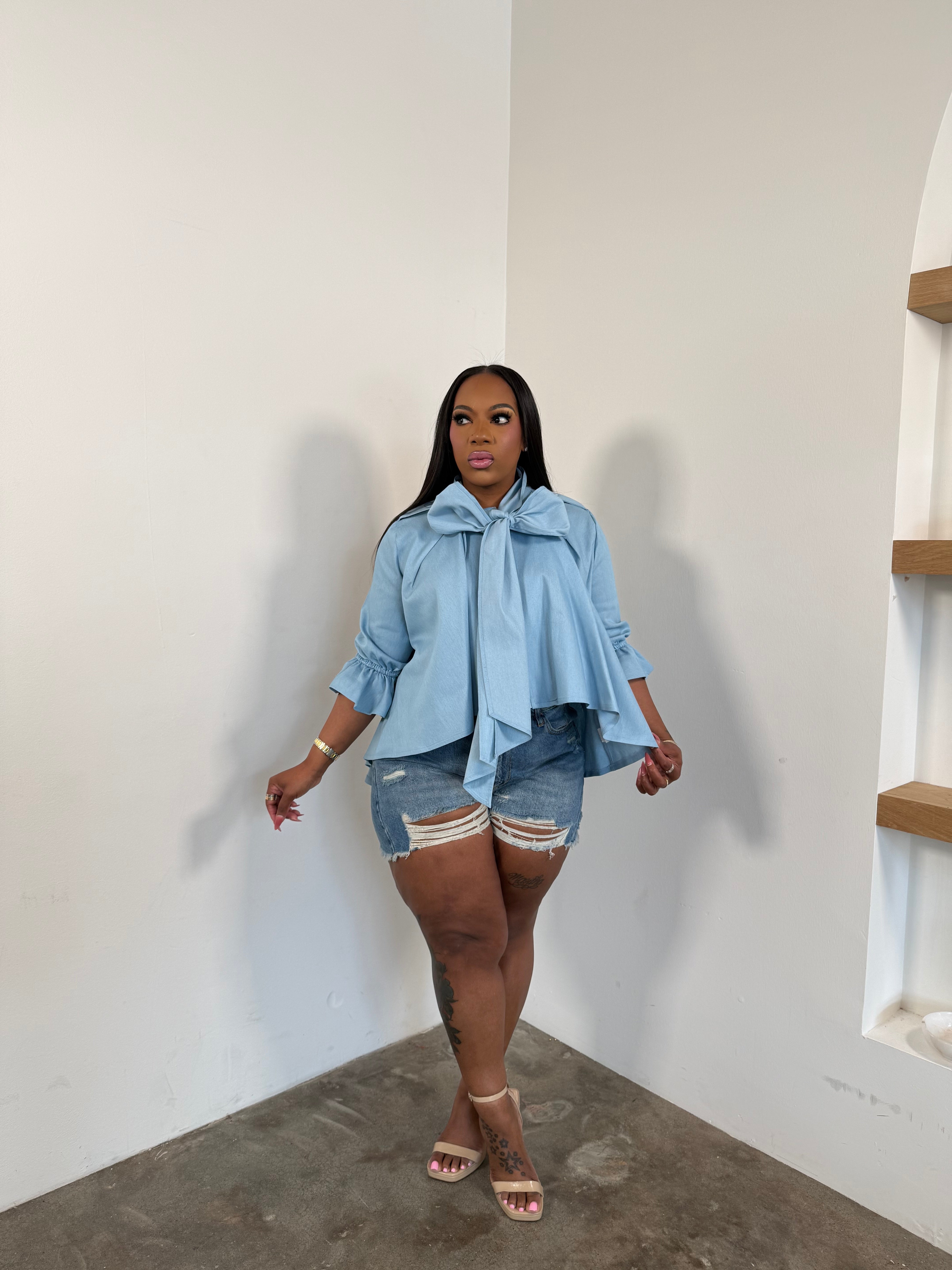 The Statement Bow Denim Top