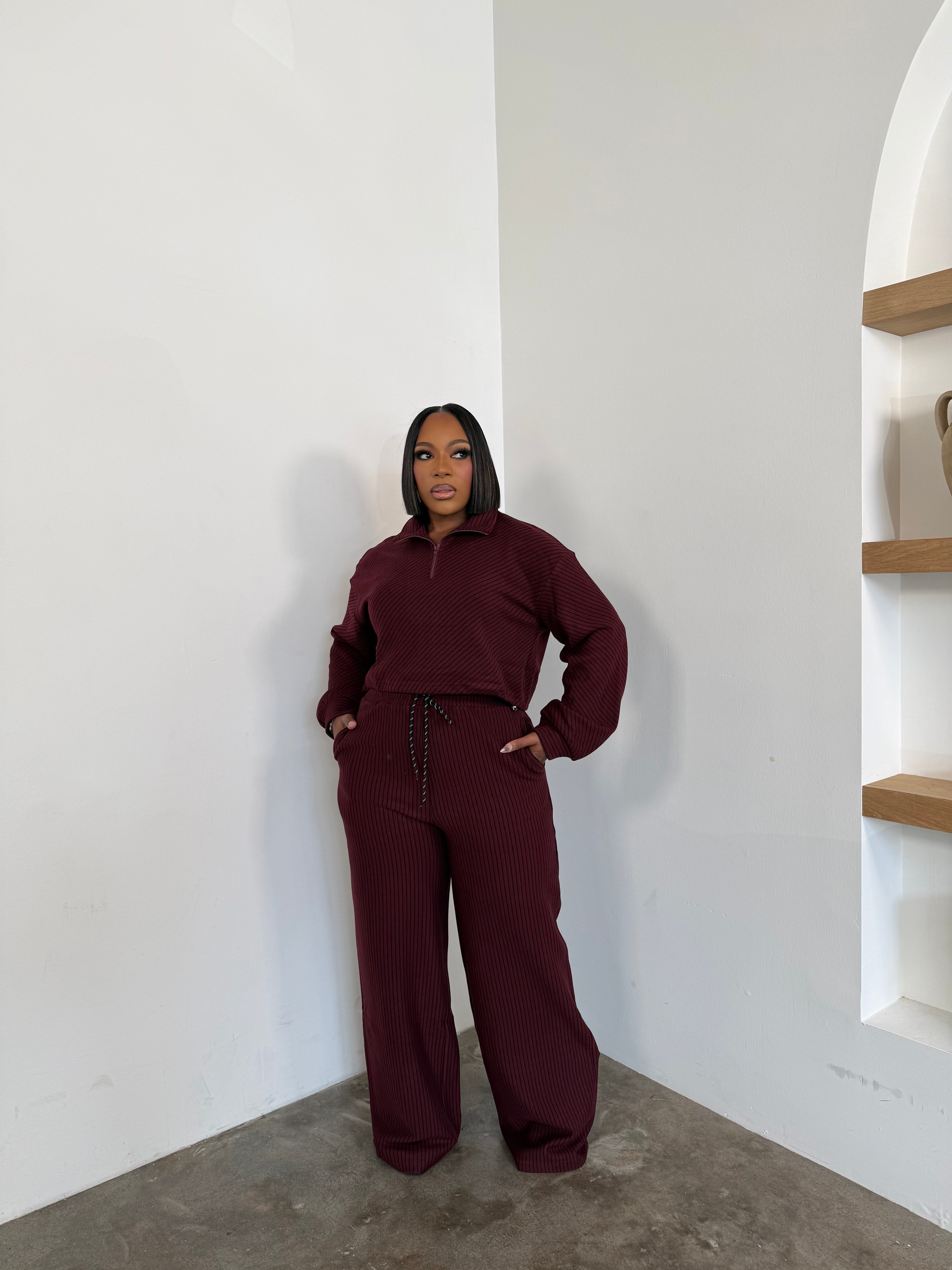 The Cozy Luxe Pants Set (I'MarE Exclusive) (Burgundy/Black)