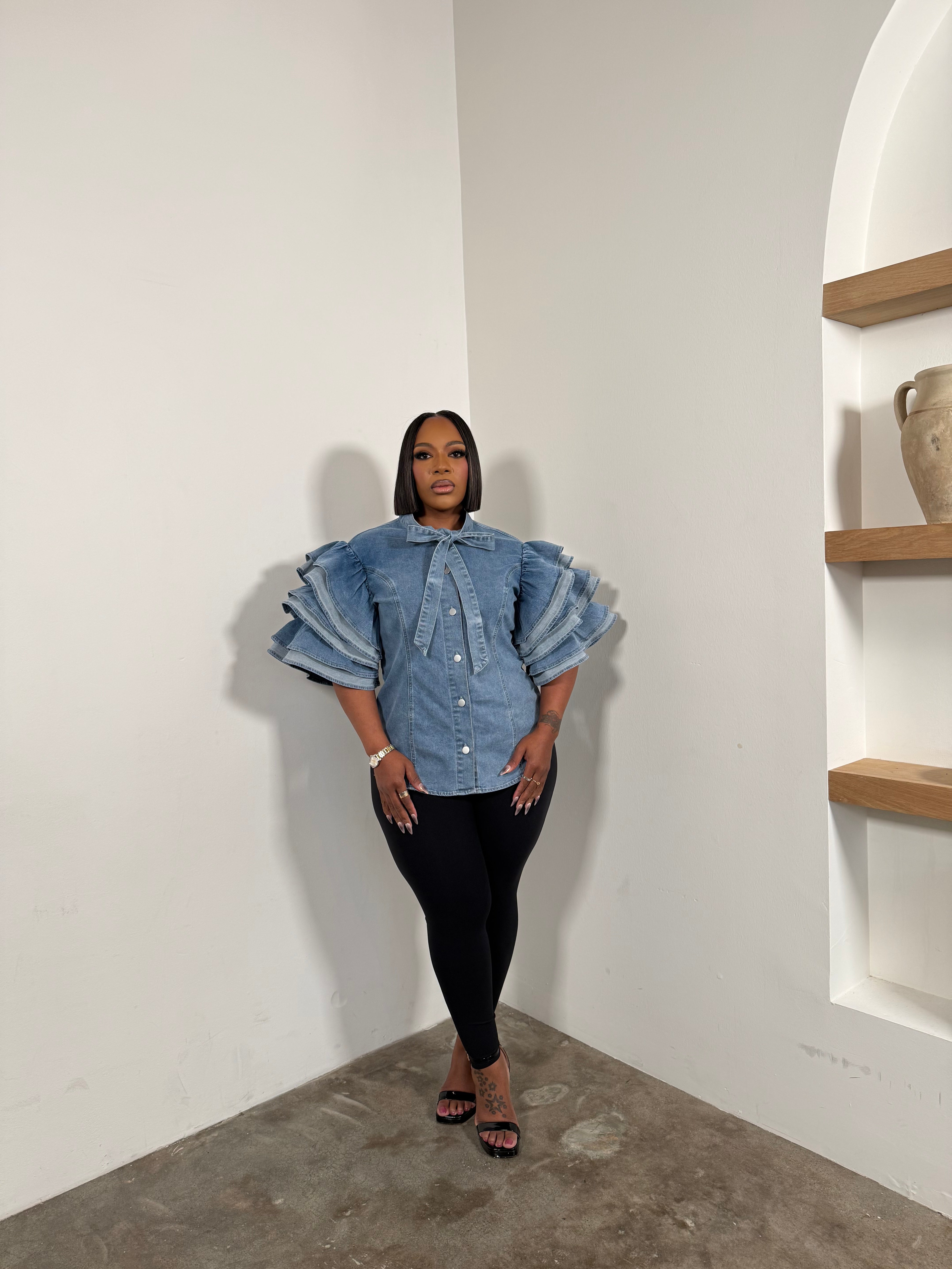 The Ruffle Sleeve Denim Top