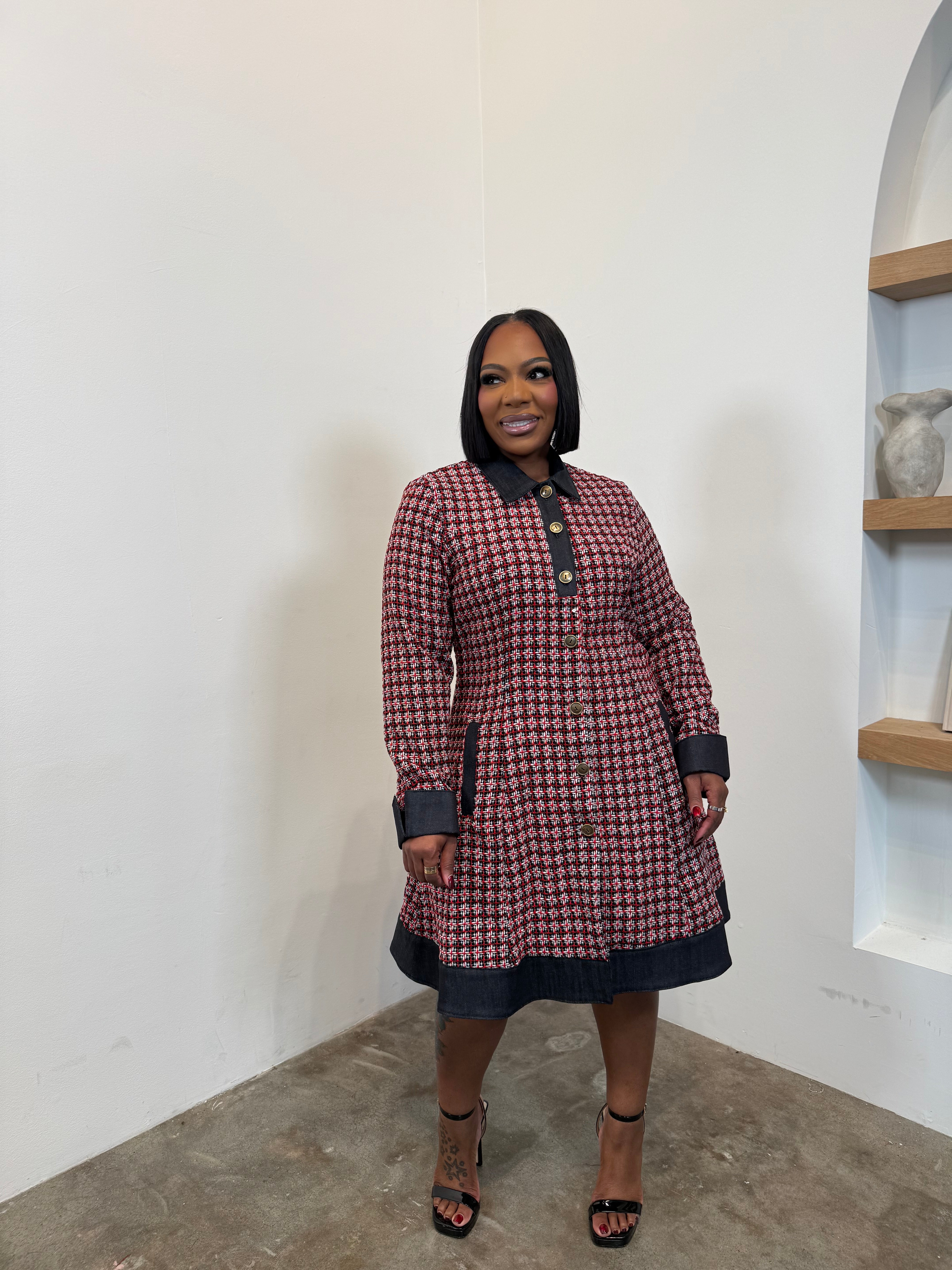 The Leading Lady Tweed Dress (Red & Black)