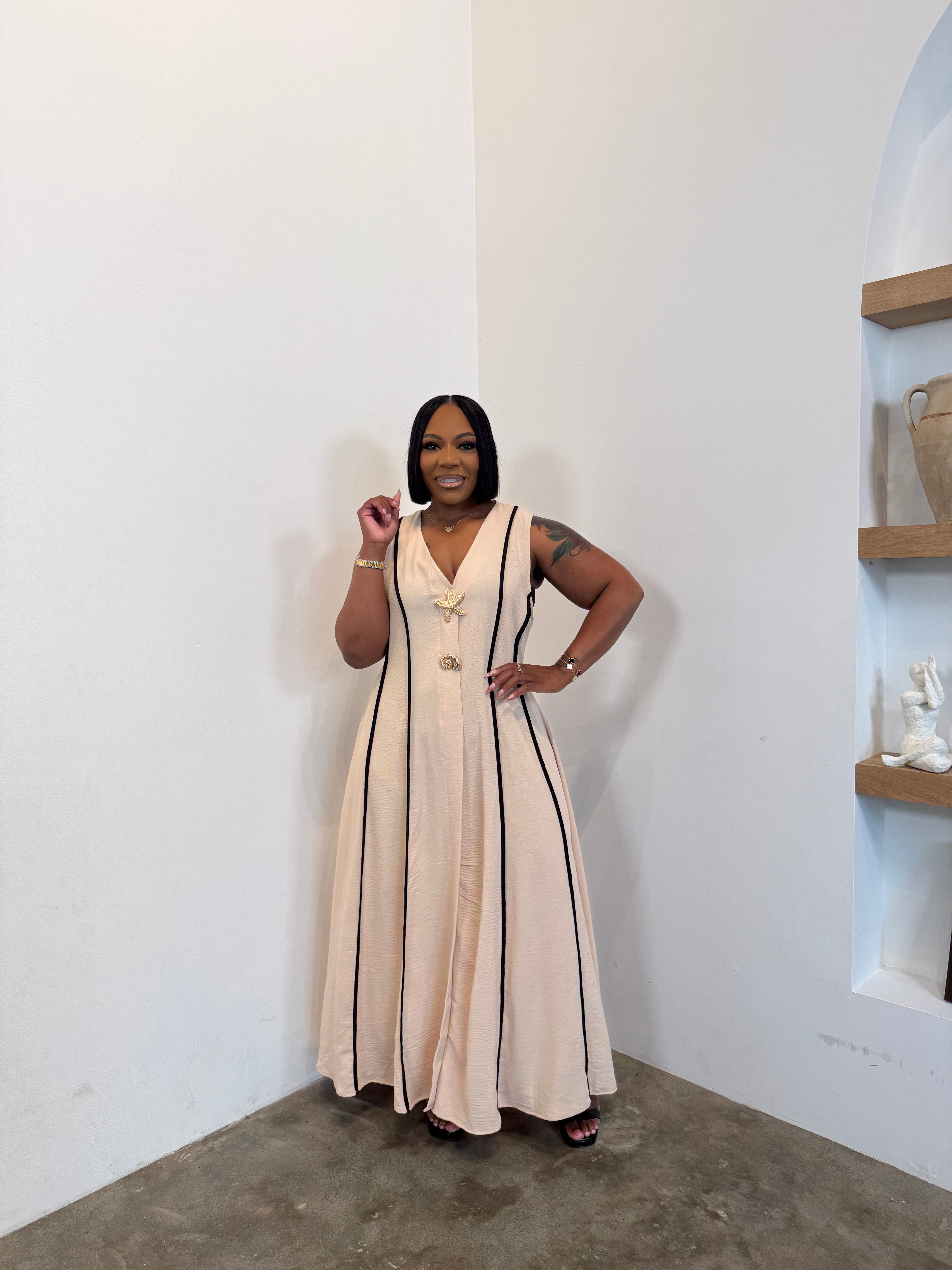 The Coastal Heiress Maxi Dress (Beige)