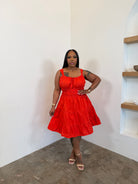 Smocked Waist Dress (Coral Red)