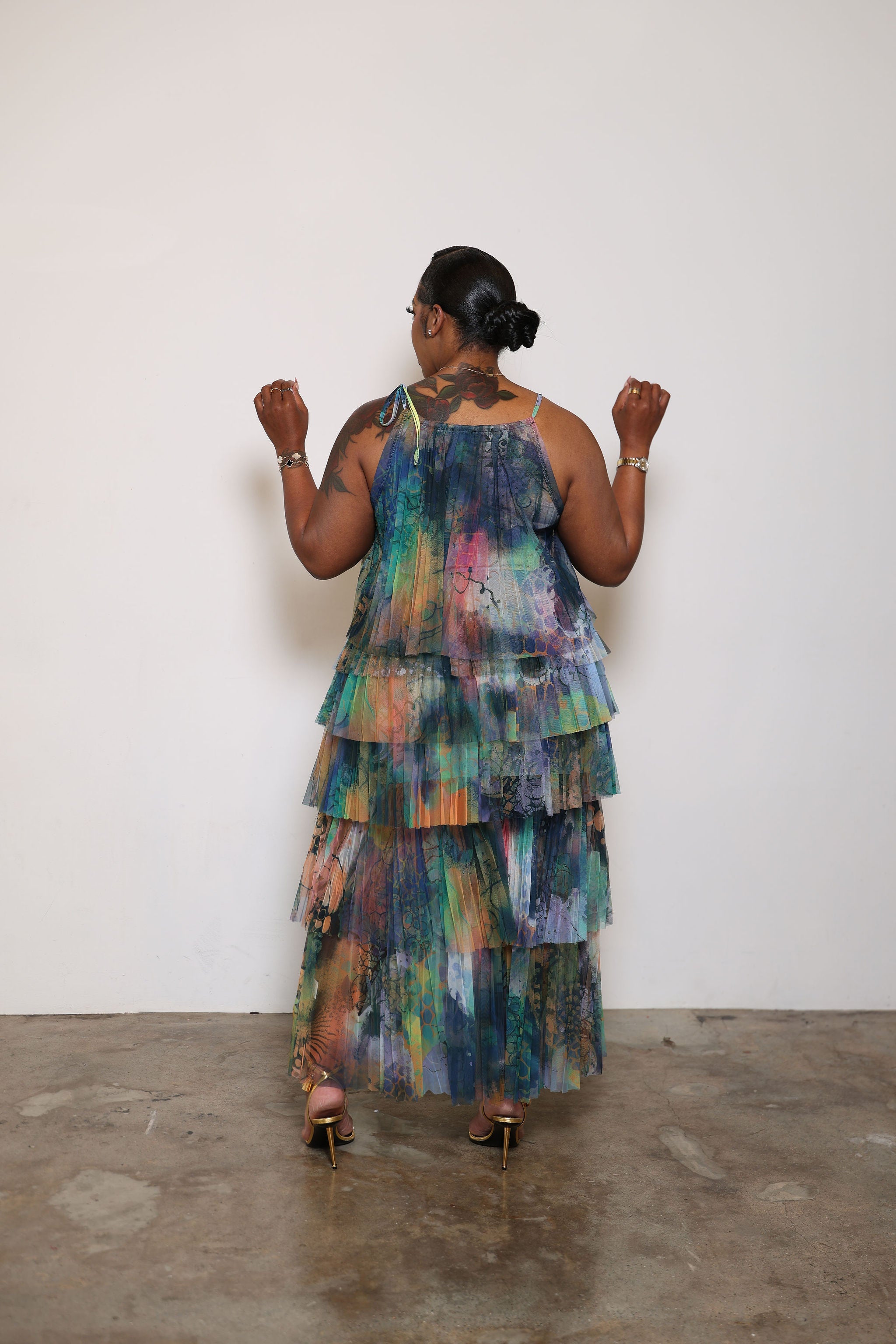 The Celeste Cascade Dress (Black)