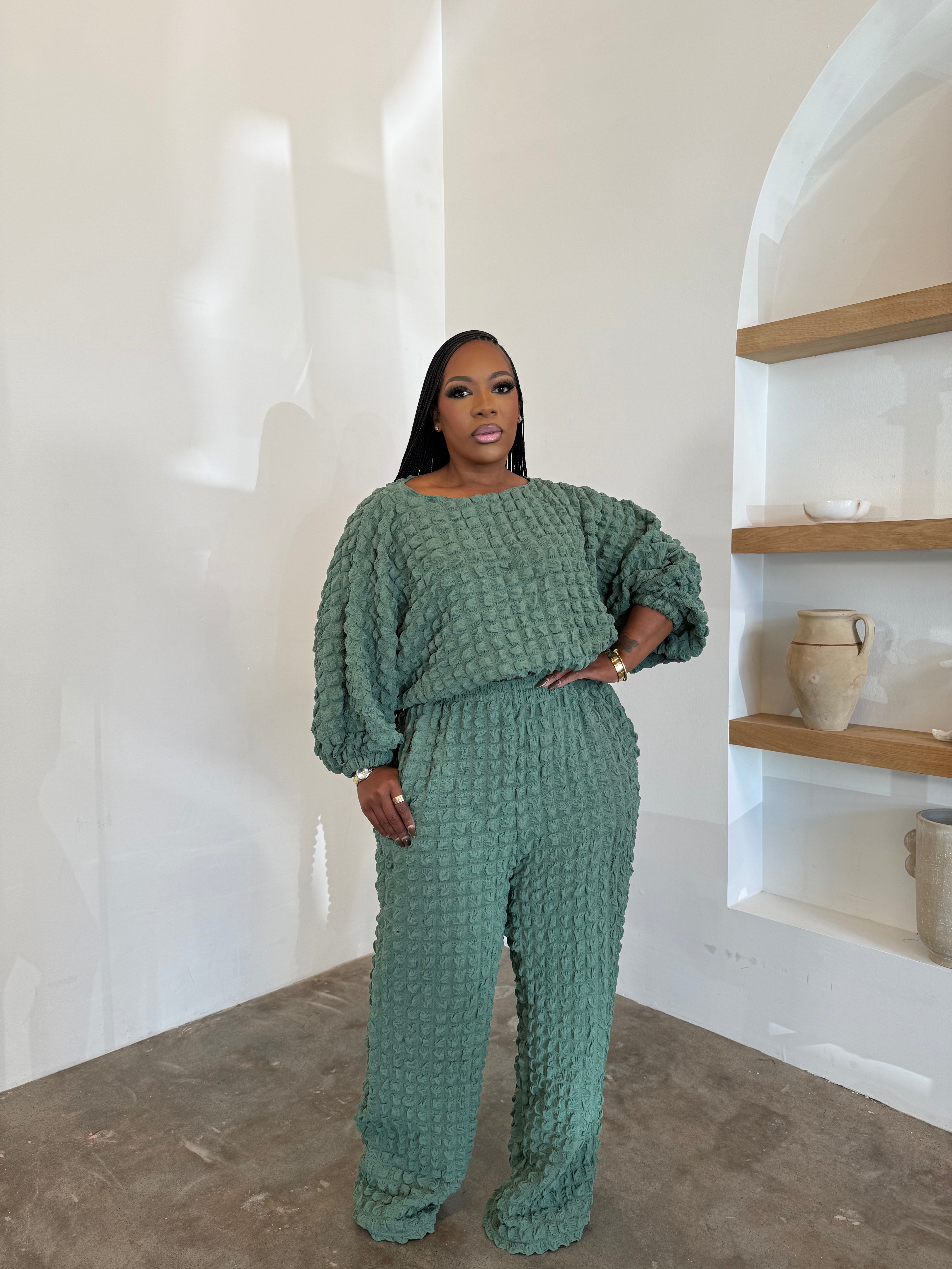 Bubbly Hot Mama Pants Set (Sage)