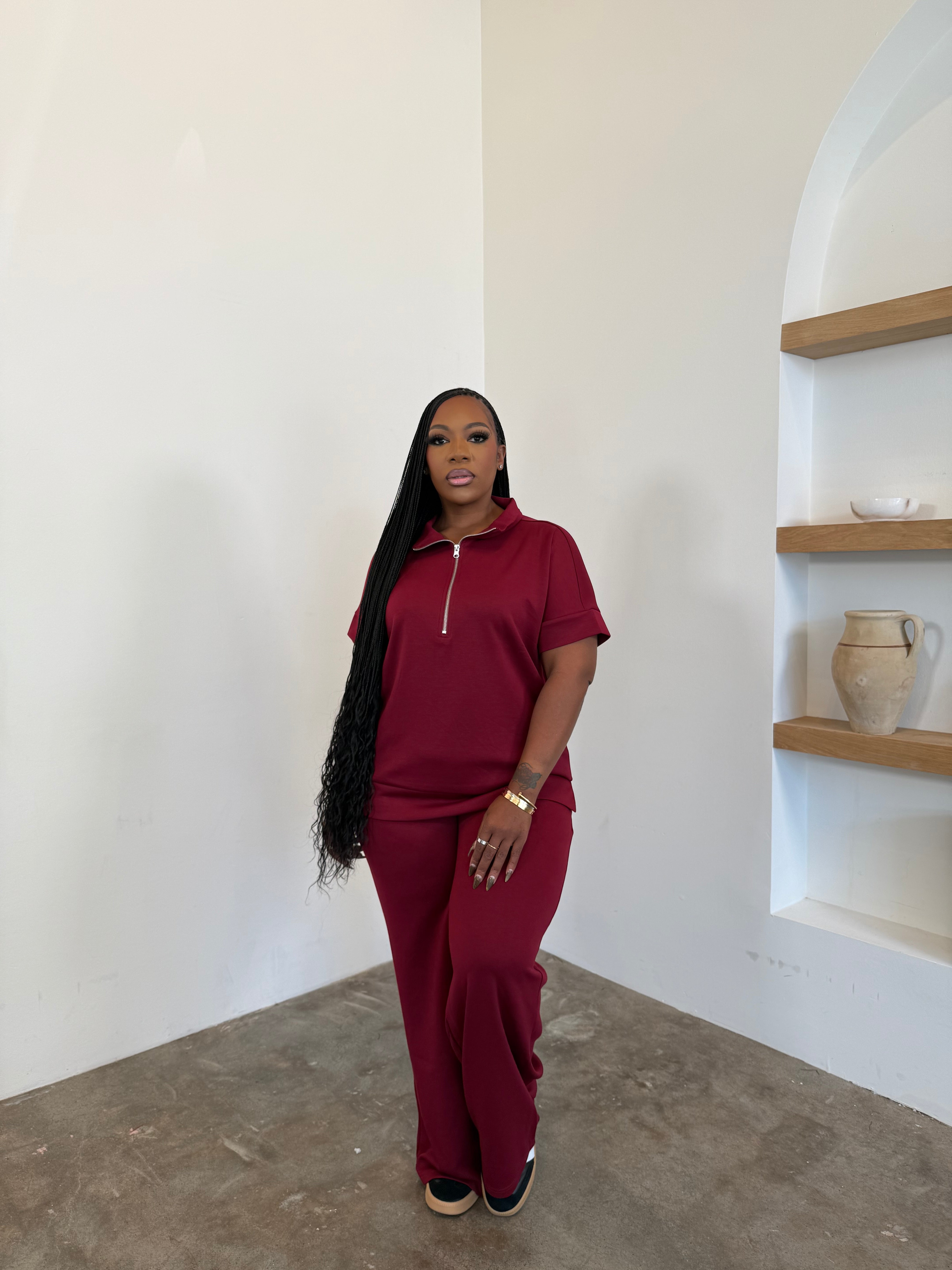 Lowkey Luxe Pants Set (Burgundy)