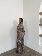 Cheetah Short Sleeve Jacket with Wide Waist Band, Long Pants
